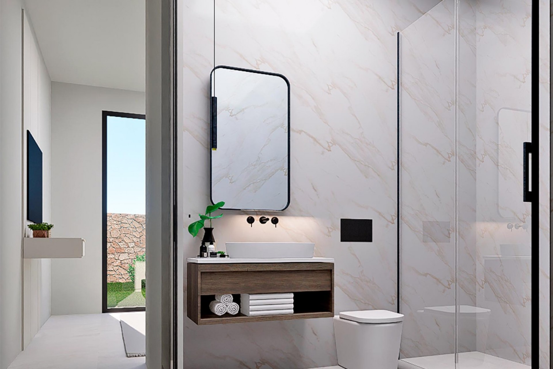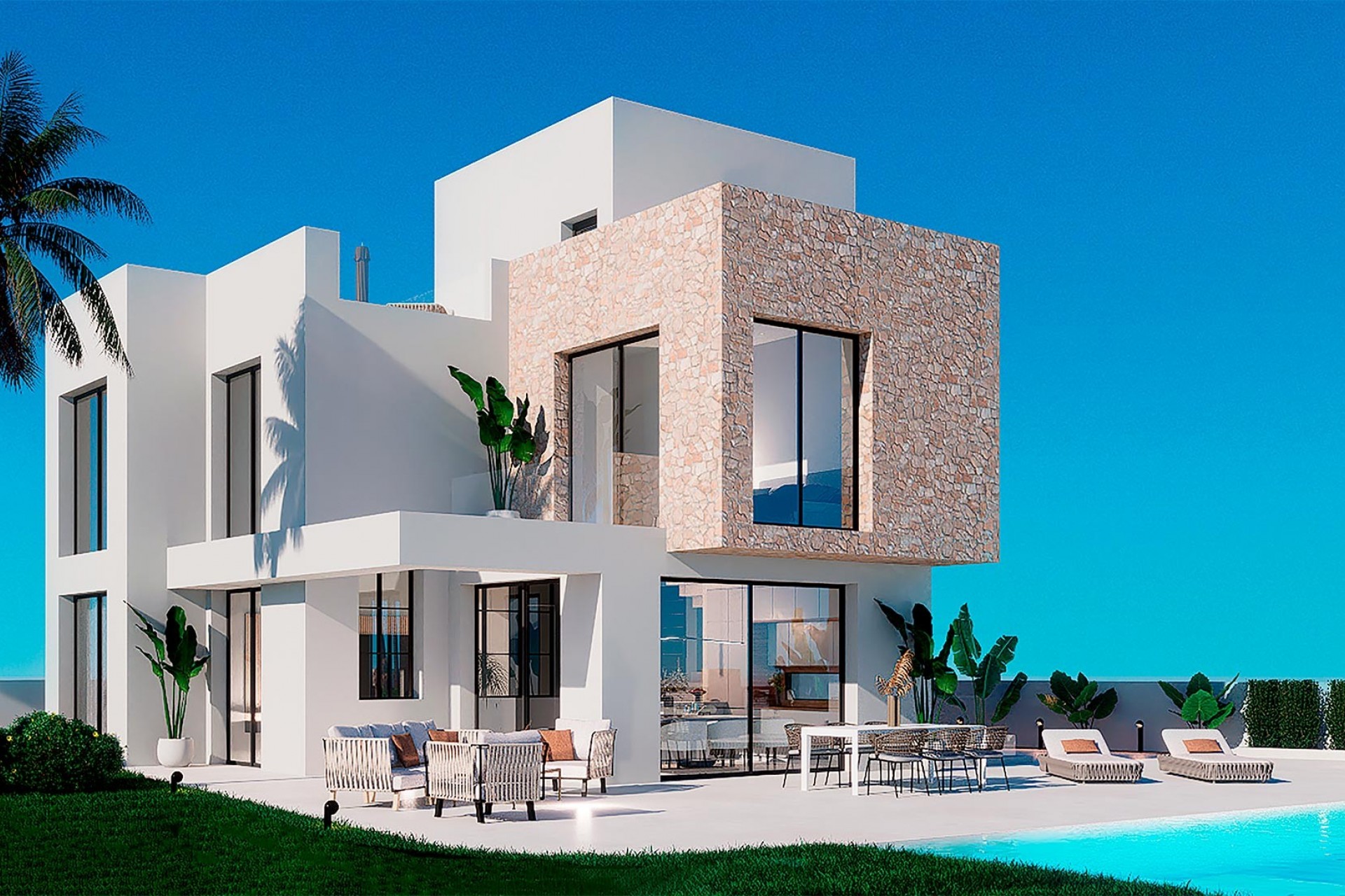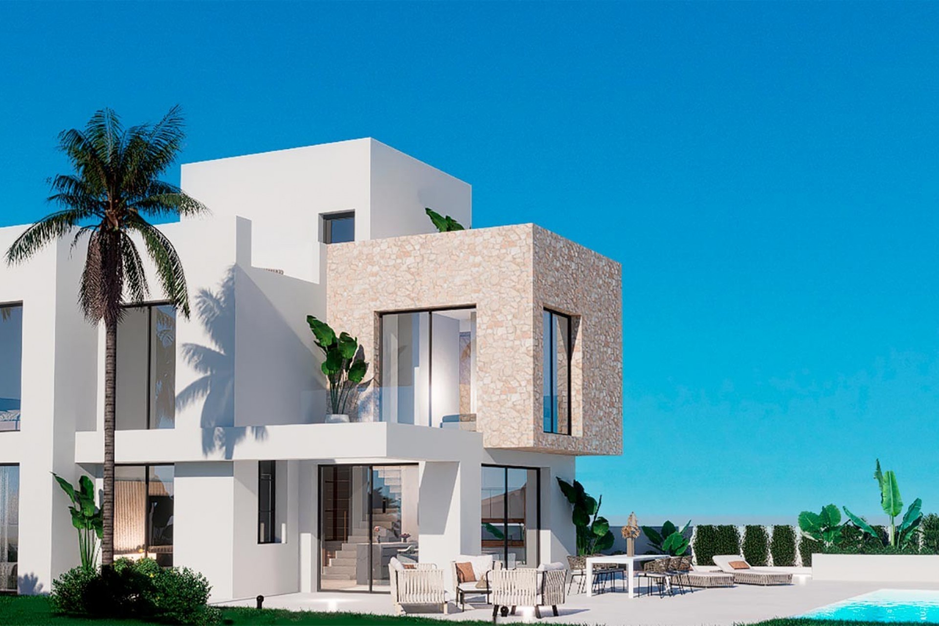 Discover Las Bellas , an exclusive complex of 15 independent villas situated in a privileged location on the Balcón de Finestrat , Alicante. Designed to offer comfort, relaxation and spectacular panoramic views of the Mediterranean Sea and the picturesque town of Finestrat, these villas are the ideal place for those seeking a quiet life close to the best beaches on the Costa Blanca , such as La Cala de Finestrat . There is only one villa in this development with 4 bedrooms and 4 bathrooms, with a finished basement and lift included. The rest of the villas have 3 bedrooms and 3 bathrooms . Some include an open-plan basement , while others offer the option to add one for an additional cost. In addition, it is possible to customize the basement with an extra room and bathroom according to your preferences, also at an additional cost. All homes have exceptional qualities , such as video intercom , armoured entrance door , pre-installation of air conditioning , fitted kitchen and bathrooms , motorised blinds and a private swimming pool . There is also the option of installing an elevator that connects all floors, available for an additional cost. Las Bellas stands out for its hilltop location, providing a serene setting away from the tourist hustle and bustle, but with easy access to all essential services such as supermarkets, restaurants and medical centres . Just a few minutes away are Benidorm 's famous beaches, such as Playa de Levante and Playa de Poniente , ideal for enjoying the sun and sea. For nature lovers, the nearby Puig Campana mountains offer endless opportunities for outdoor activities, such as hiking and cycling. The location of Las Bellas guarantees fast and convenient connections to the main cities in the region. Alicante-Elche Airport (ALC) is just 50 km away, while Valencia Airport (VLC) is approximately 140 km away. In addition, the AP-7 motorway and the CV-70 road provide easy access to Alicante, Valencia, Murcia and Barcelona . For those who enjoy shopping and leisure, the area has several shopping centres such as La Marina in Finestrat, Puerta de Alicante and La Cala in Benidorm, which offer a wide range of shops, restaurants and entertainment options. If you are looking for a luxury villa in a quiet location, but close to everything you need, Las Bellas in Finestrat is the perfect choice. Contact us today and make your dream of living in this Mediterranean paradise come true!