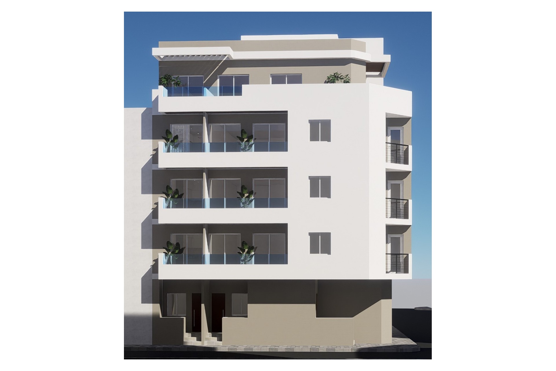 Edificio San Julian - This new building of 10 exclusive homes offers a fantastic opportunity for those looking for a modern home in one of the best locations in Torrevieja. With options of studios, 1 and 2 bedroom flats, each property has been designed to optimise space and natural light, offering a cosy and functional environment. All homes have a private balcony, ideal for enjoying the Mediterranean climate, and the building has lift access to all floors, ensuring convenience for all residents. In addition, the homes include pre-installation for air conditioning, an armoured front door for added security, an aerothermal system that guarantees energy efficiency in the production of hot water and a fitted kitchen with a contemporary design. Located about 600 meters from the Acequión Beach, this building allows you to enjoy the sea and the promenade in a matter of minutes. Torrevieja is a vibrant city with all the services necessary for an excellent quality of life, including supermarkets, restaurants, health centers and a wide range of leisure activities. In addition, its warm and sunny climate throughout the year, together with the proximity to the Lagunas de La Mata and Torrevieja, make this location a perfect place both to reside permanently or to enjoy a holiday by the Mediterranean. For shopping lovers, the Habaneras shopping centre is less than 10 minutes away by car, while La Zenia Boulevard, one of the largest shopping centres on the Costa Blanca, is just 15 minutes away. If you are a golf fan, within a 20-minute radius you will find some of the best courses in the area, such as Villamartín Golf, Las Ramblas Golf and Campoamor Golf, offering first-class facilities in a privileged natural setting. In addition, Alicante airport is just 45 minutes away by car, facilitating connections to national and international destinations. If you are looking for a modern home in a prime location, this is the perfect time to invest on the Costa Blanca. Contact us for more information or to arrange a viewing. If you are looking for a modern home in a prime location, this is the perfect time to invest on the Costa Blanca. Contact us for more information or to arrange a viewing.