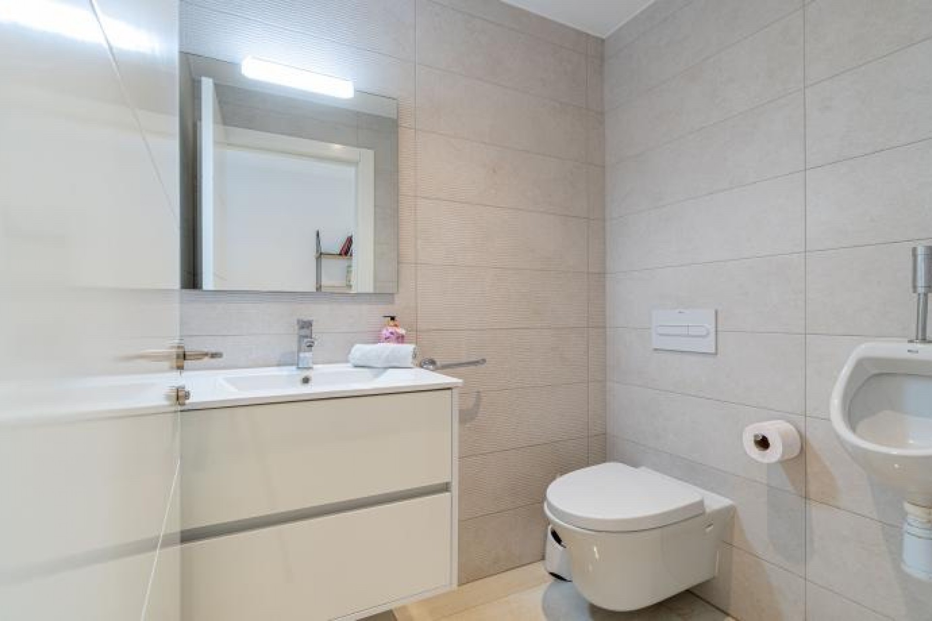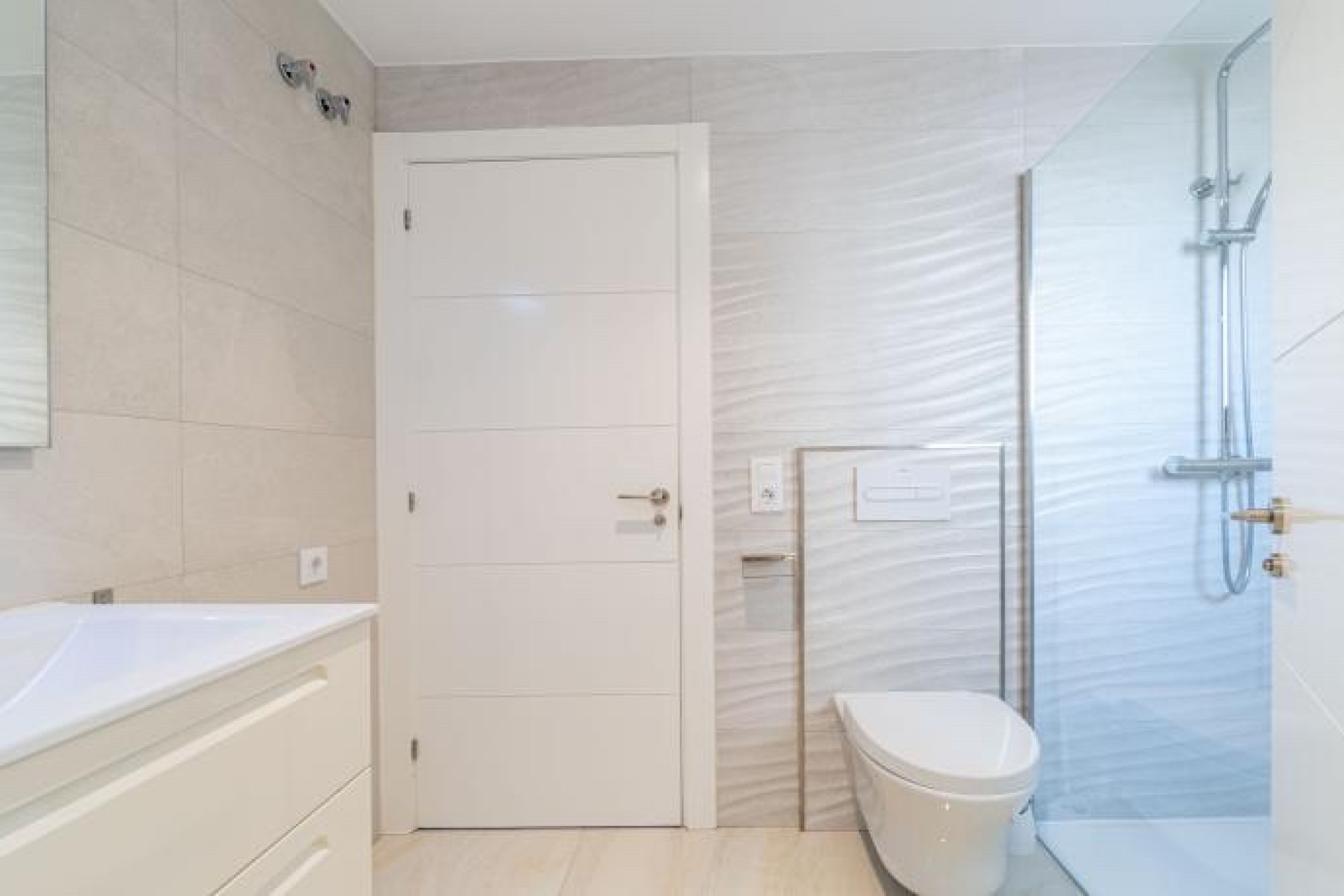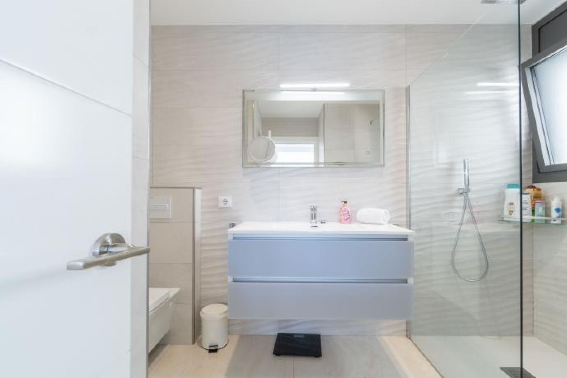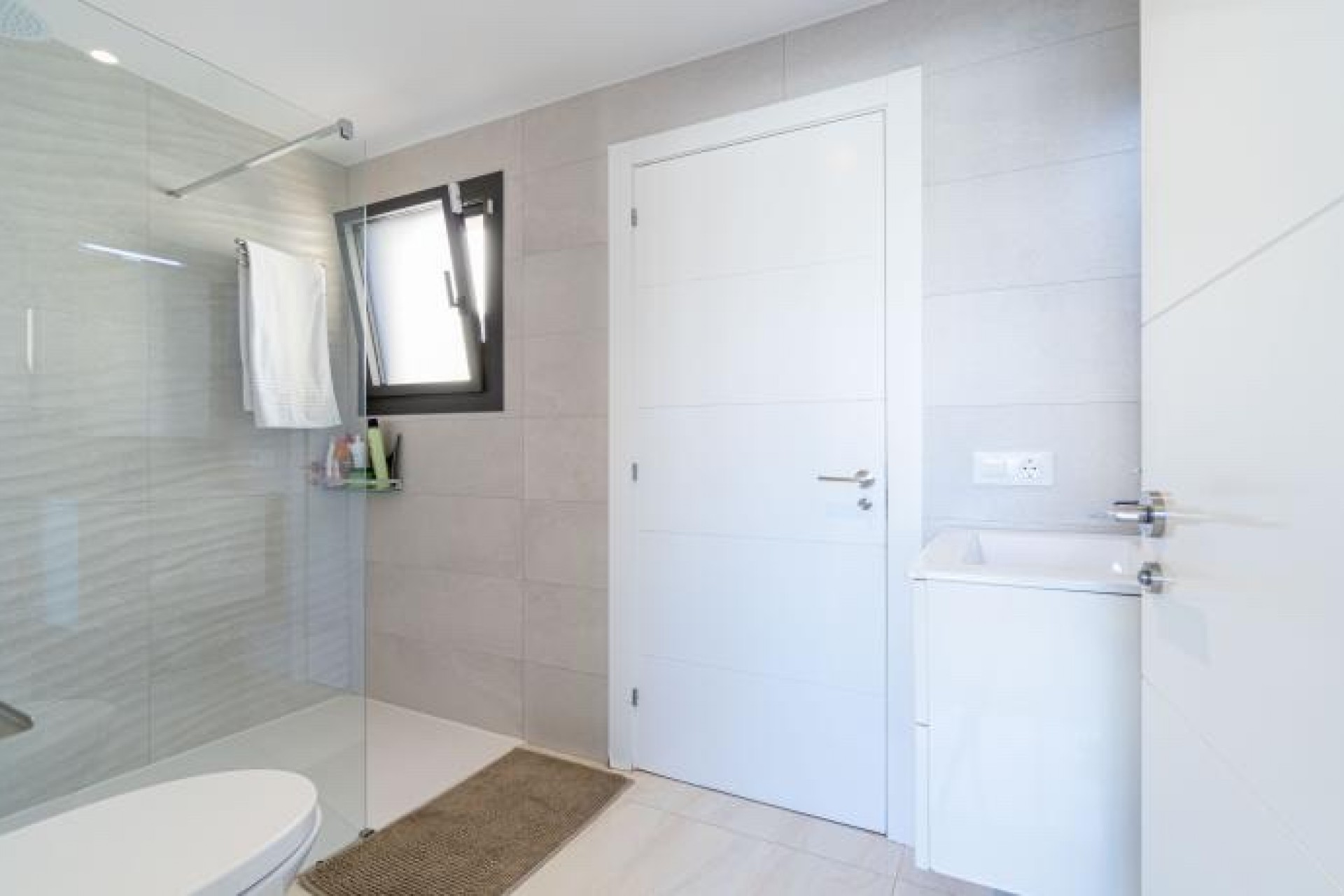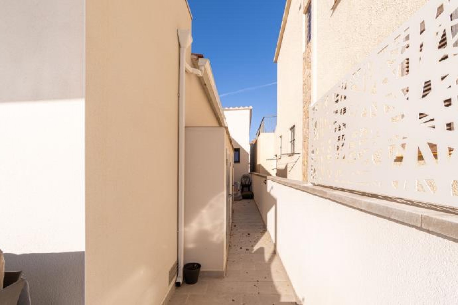 La propiedad se distribuye en una sola planta, con dos amplios dormitorios, cada uno con armarios empotrados, y un baño con ducha que conecta ambos. Además, cuenta con una suite privada con acceso a la terraza y a la piscina climatizada, perfecta para relajarte en cualquier época del año. Para mayor comodidad, también dispone de un WC para invitados.