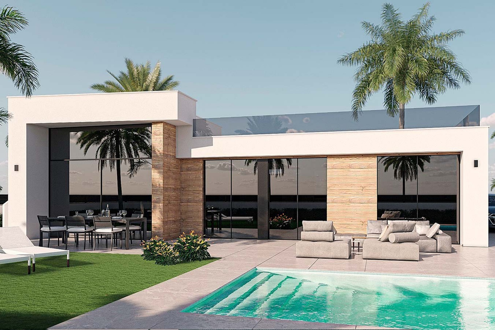 Oriol villas es un conjunto de villas independientes de 2 y 3 dormitorios, distribuidas en una sola planta, que se encuentran en Alhama Golf Resort, en Murcia. Ubicado en un entorno natural impresionante, este resort de golf ofrece una experiencia completa para los amantes del golf y aquellos que buscan disfrutar de unas vacaciones relajantes en un entorno lujoso. Su magnífico campo de golf de 18 hoyos diseñado por Jack Nicklaus, con fairways desafiantes y paisajes espectaculares, es un verdadero paraíso para los golfistas de todos los niveles. Además, el resort cuenta con excelentes instalaciones, incluyendo una academia de golf y un club social, donde los jugadores pueden socializar y disfrutar de una experiencia inigualable. El recinto cuenta con vigilancia 24 horas, y el centro comercial Al Kasar, que dispone de multitud de servicios como restaurantes, tiendas, peluquería, supermercado, etc. Se encuentra a unos 15 minutos de las Playas de Mazarrón y del Aeropuerto Internacional de Murcia, y a 30 minutos del Parque Natural de Sierra Espuña. Ya sea que busques jugar al golf, relajarte en un entorno exclusivo o explorar la belleza de Murcia, este resort es el lugar perfecto para una experiencia inolvidable. Oriol Villas te permitirá vivir en este inigualable entorno, con viviendas diseñadas en una sola planta para tu mayor comodidad, y opción de 2 o 3 dormitorios según tus necesidades. Los espacios exteriores se han cuidado mucho, con amplias parcelas de más de 300 metros, con zona de aparcamiento, jardín y zona de piscina (opcional para el modelo de 2 dormitorios). ¿Te apetece conocer todos los detalles de estas acogedoras villas? ¡Contacta con Sunnier Homes y pide más información!