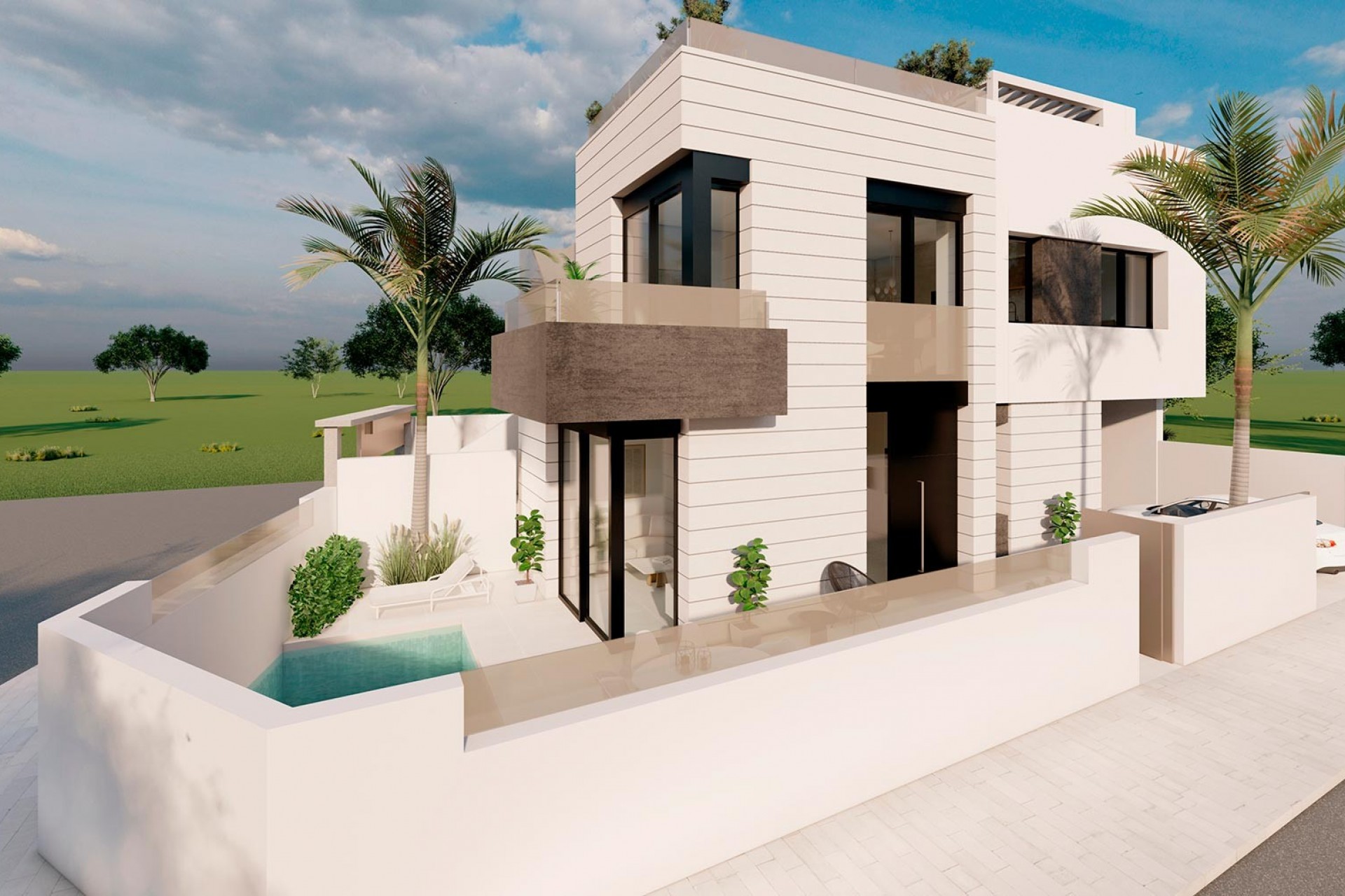 Descubra este exclusivo proyecto de tan solo dos bungalows ubicado en pleno centro de Pilar de la Horadada, a un paso de todos los servicios y a pocos minutos de las playas del Mediterráneo. Una oportunidad única para disfrutar de un estilo de vida cómodo, moderno y orientado al sol, en una de las zonas con mayor calidad de vida de la Costa Blanca. Cada vivienda ofrece 2 dormitorios y 2 baños, incluyendo un baño en suite en el dormitorio principal, con una cuidada distribución y acabados contemporáneos. El bungalow de planta baja destaca por su amplia parcela privada, con piscina propia y zona de aparcamiento, mientras que el bungalow de planta alta ofrece un espectacular solárium en la azotea con piscina privada y vistas al mar, un espacio perfecto para relajarse y disfrutar de la orientación sur, que garantiza sol durante prácticamente todo el día. Las viviendas vienen equipadas con preinstalación de aire acondicionado, cocina amueblada, puerta de entrada de seguridad, doble acristalamiento y armarios empotrados, asegurando confort, eficiencia y un acabado de alta calidad. La ubicación es inmejorable: Pilar de la Horadada ofrece todo tipo de servicios —restaurantes, supermercados, centros médicos, farmacias y zonas deportivas— además de una excelente conexión con las magníficas playas de Torre de la Horadada y Higuericas. En los alrededores también encontramos prestigiosos campos de golf como Lo Romero Golf, así como centros comerciales como Zenia Boulevard. El aeropuerto de Alicante y el aeropuerto de Murcia-Corvera se encuentran a una cómoda distancia, garantizando accesibilidad durante todo el año. Un proyecto exclusivo para quienes buscan una vivienda única, llena de luz y con el auténtico lifestyle mediterráneo. Contáctenos hoy y descubra su nuevo hogar en Pilar de la Horadada.