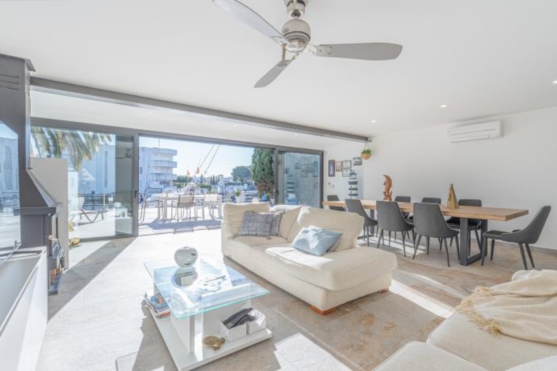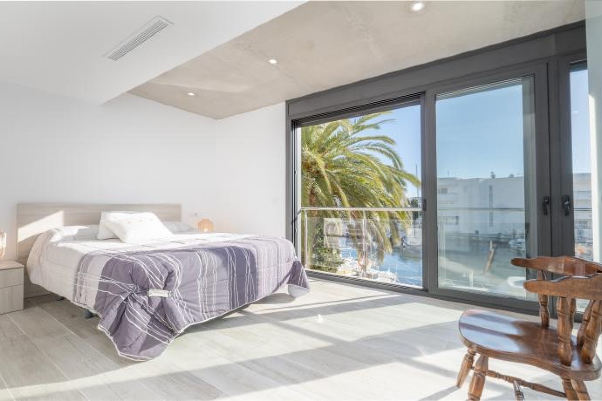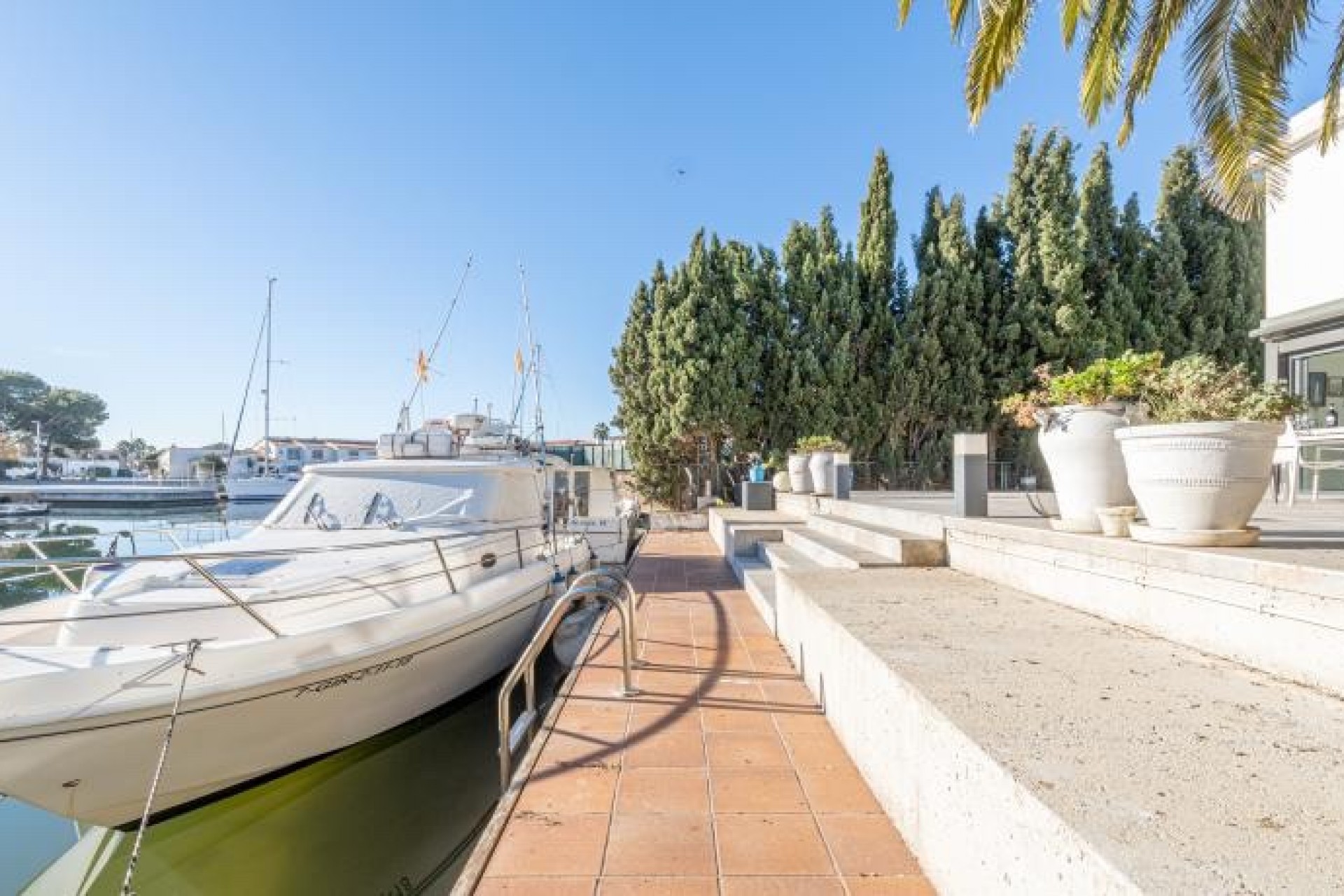 Cette maison moderne est construite sur un terrain de 500 m2 et dispose d'un amarrage de 15 m. Elle se compose de la distribution suivante : Le rez-de-chaussée nous offre un hall d'entrée avec toilettes, un spacieux séjour avec une cheminée et d'immenses baies vitrées avec une grande ouverture pour profiter de l'espace ouvert. À l'étage supérieur, nous trouvons 4 chambres doubles (dont une suite avec douche) et une autre salle de bain complète également avec douche.