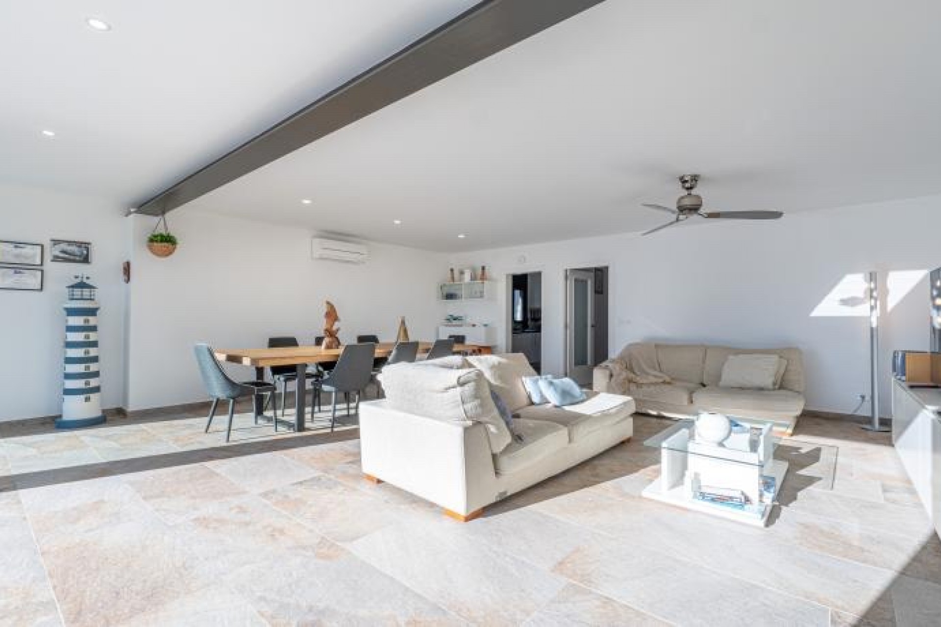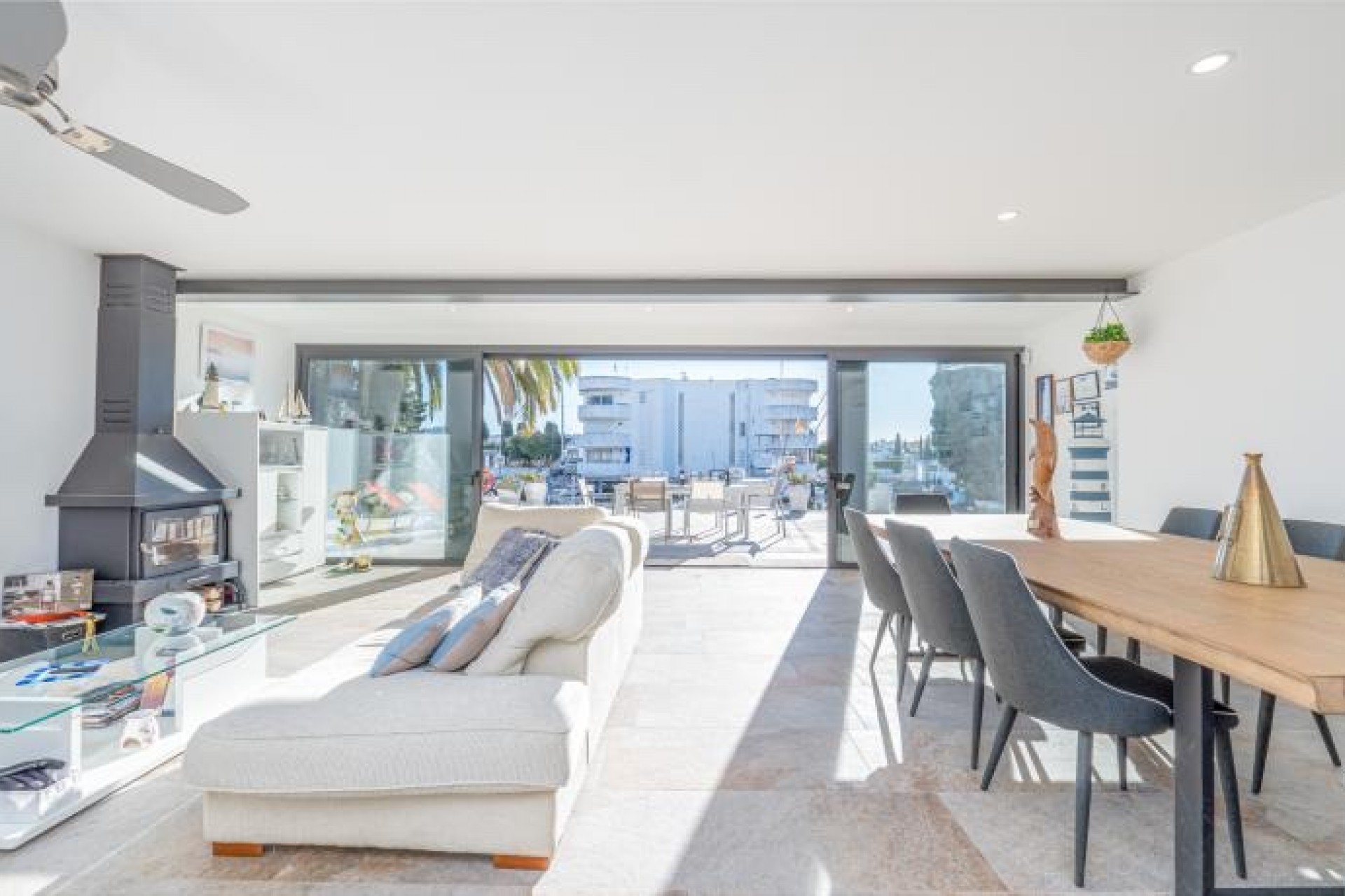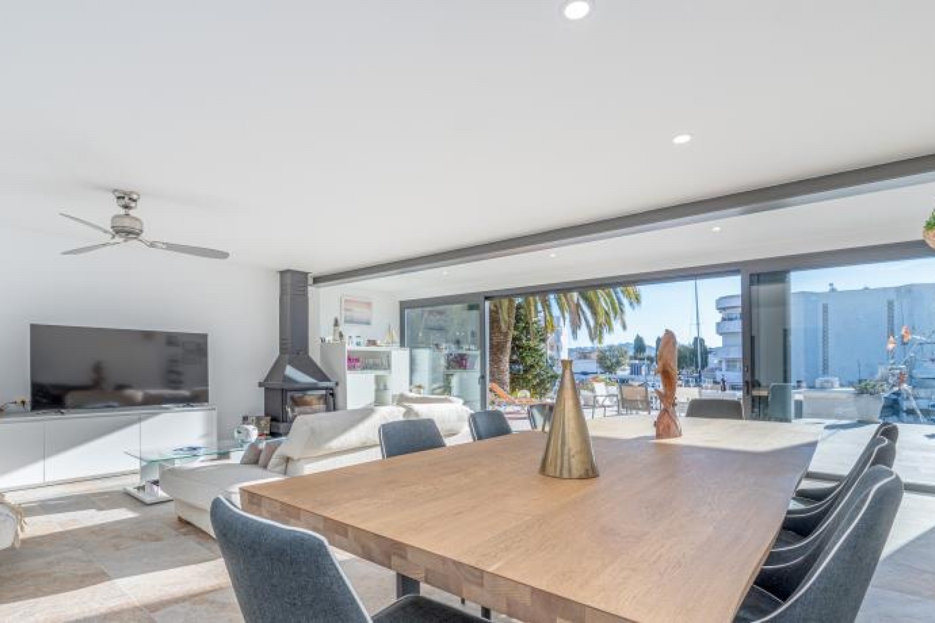 Cette maison moderne est construite sur un terrain de 500 m2 et dispose d'un amarrage de 15 m. Elle se compose de la distribution suivante : Le rez-de-chaussée nous offre un hall d'entrée avec toilettes, un spacieux séjour avec une cheminée et d'immenses baies vitrées avec une grande ouverture pour profiter de l'espace ouvert. À l'étage supérieur, nous trouvons 4 chambres doubles (dont une suite avec douche) et une autre salle de bain complète également avec douche.