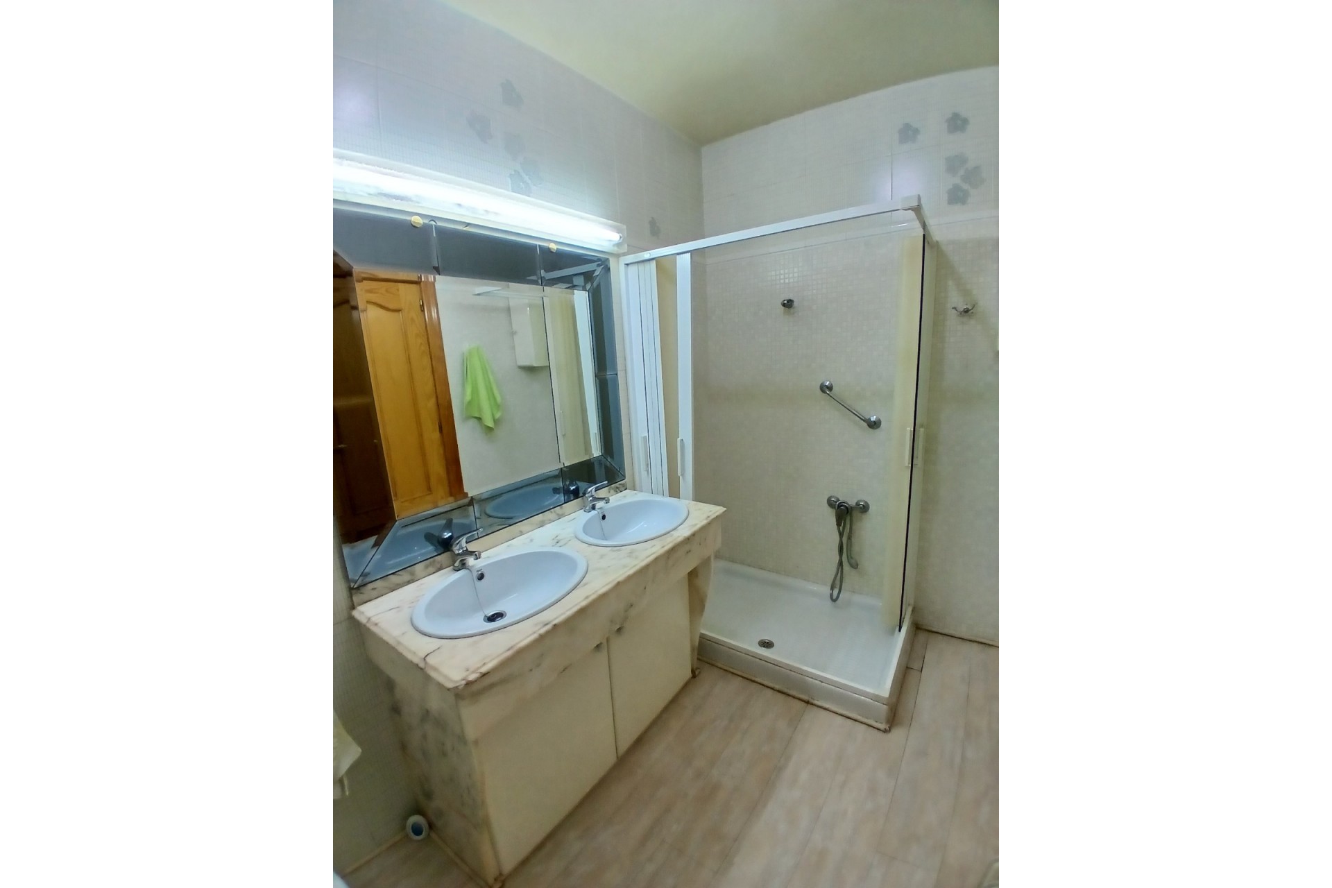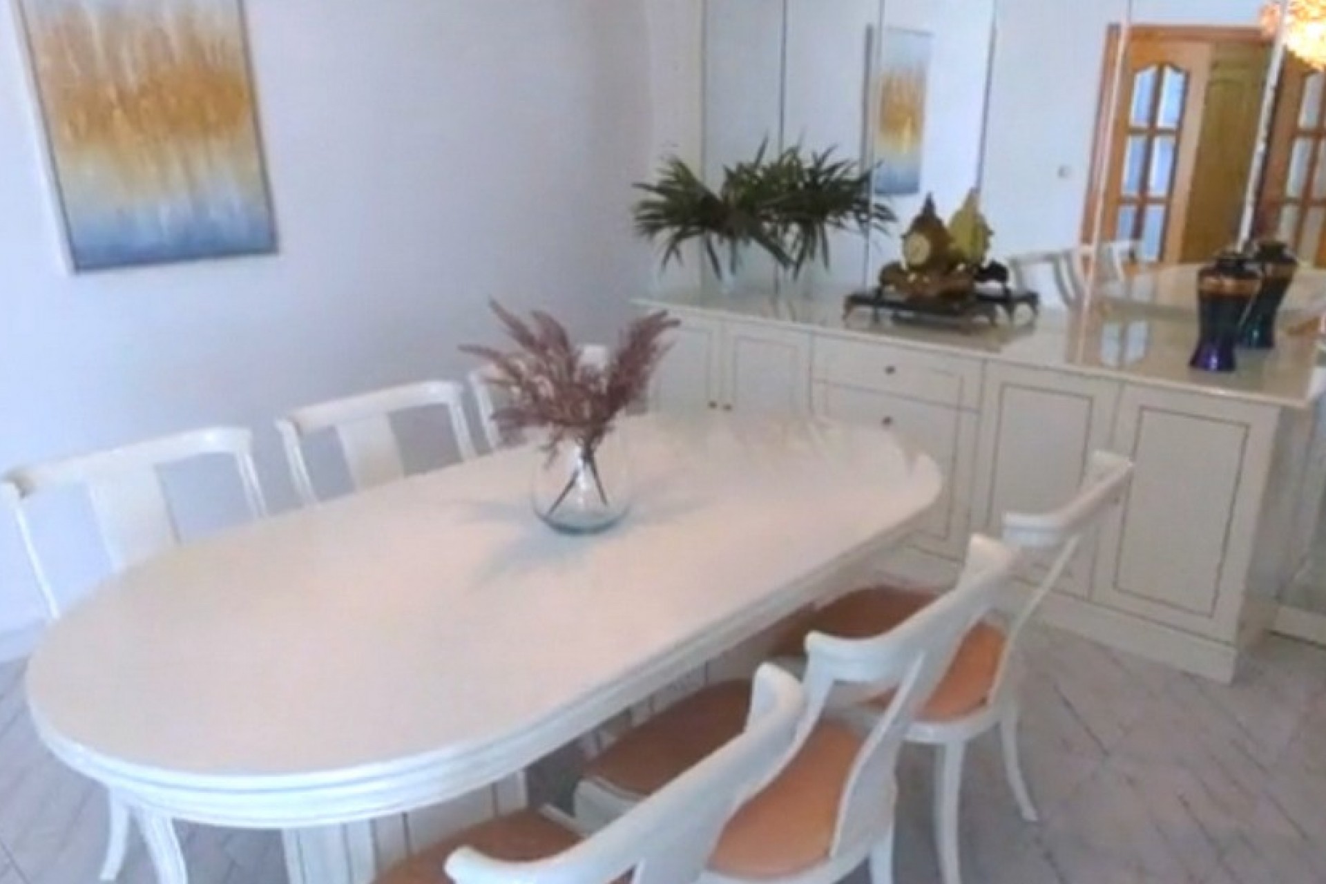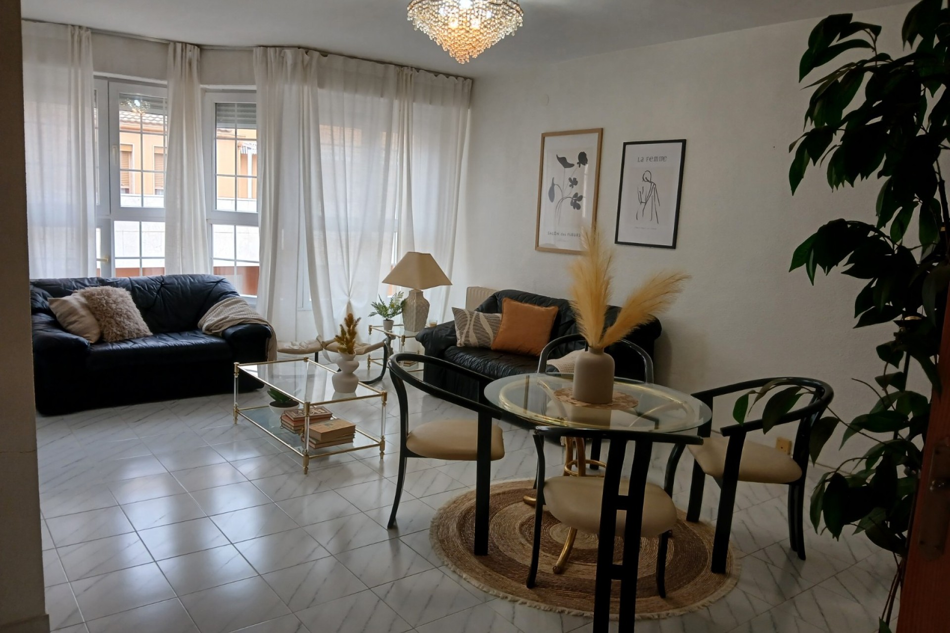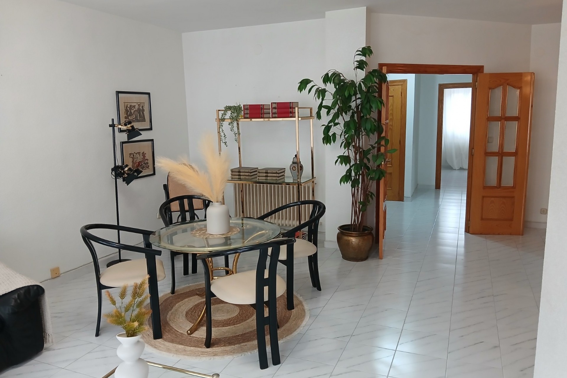 Spacieux penthouse lumineux en plein centre de Yecla, avec toutes les commodités, y compris son propre hôpital. Le penthouse dispose d'une entrée spacieuse avec placards et d'un très grand salon-salle à manger de 42,2m2 avec beaucoup de lumière naturelle. Il y a une cuisine séparée de 11,3m2 avec un four encastré, une plaque électrique avec hotte, un petit lave-vaisselle Bosch et un réfrigérateur-congélateur. Pour un rangement supplémentaire, il y a une buanderie de 2,7m2. Adjacente à la cuisine se trouve une buanderie avec chaudière et évier, cette pièce s'ouvre sur un balcon à l'ombre pendant la journée, vous n'aurez donc pas à souffrir de la chaleur. Il y a 4 chambres à coucher, la plus grande de 13,26m2 a une baie vitrée et une grande armoire faite sur mesure, la chambre de taille moyenne de 11,3m2 a également une armoire faite sur mesure. En outre, il y a 2 autres chambres de 8,9m2 dont l'une est actuellement utilisée comme coin lecture, cette chambre a également un balcon privé de 10,9m2, où vous pouvez profiter du soleil et travailler votre bronzage ;-). Enfin, il y a 2 salles de bains, 1 de 4,6m2 avec baignoire et 1 de 5,3m2 avec douche. La maison est entièrement équipée de double vitrage et de volets. En outre, il y a un chauffage central (séparé par appartement) au mazout, l'installation se trouve dans une pièce séparée une l'étage supérieur. Il y a un grand garage sous l'appartement, les résidents peuvent y louer une place de parking moyennant une redevance (40-50 euros par mois). Les propriétaires actuels ne l'ont pas utilisé car ils n'avaient pas besoin de voiture en ville. La propriété est disponible immédiatement.