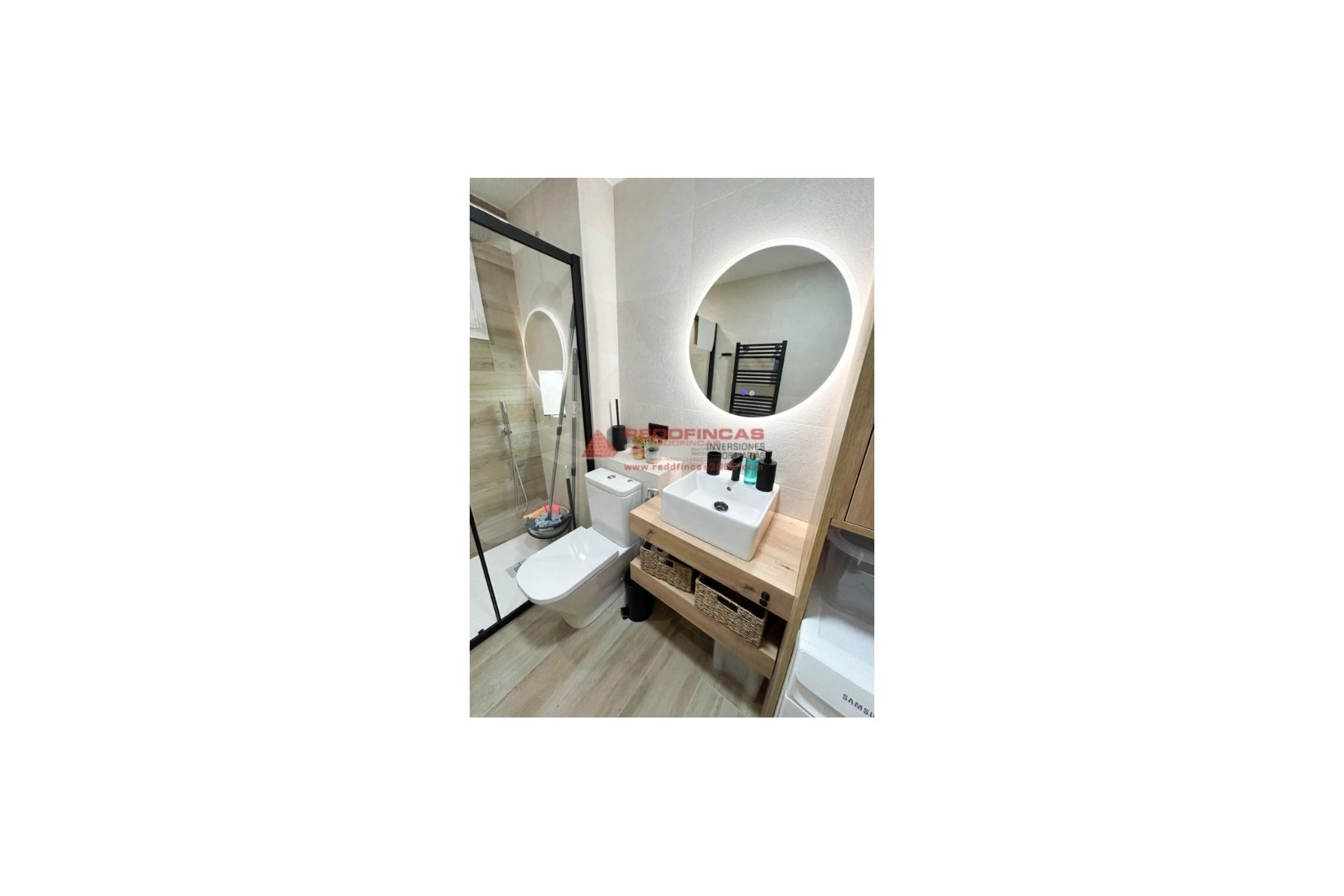 L'appartement dispose de deux splits de climatisation pompe à froid/chaud pour vous assurer un environnement confortable toute l'année. La sécurité est garantie grâce à sa porte d'entrée blindée, et son design intelligent a opté pour des portes coulissantes laquées blanches en bois pour maximiser l'espace. La salle de bain moderne comprend un receveur de douche, une paroi de douche coulissante avec profilés noirs, une robinetterie thermostatique, une douche pour toilettes avec eau froide et chaude, ainsi qu'un meuble où ont été installés le chauffe-eau de 80 litres et le lave-linge séchant Samsung. Son sol en céramique apporte une touche de distinction et est, avec un îlot en bois massif de chêne, et des meubles laqués blancs avec un ongle de grande qualité, est équipé d'une cuisinière vitrocéramique, d'un micro-ondes, d'une hotte intégrée, d'un lave-vaisselle et d'un réfrigérateur, ce qui fait que préparer vos repas est un plaisir.