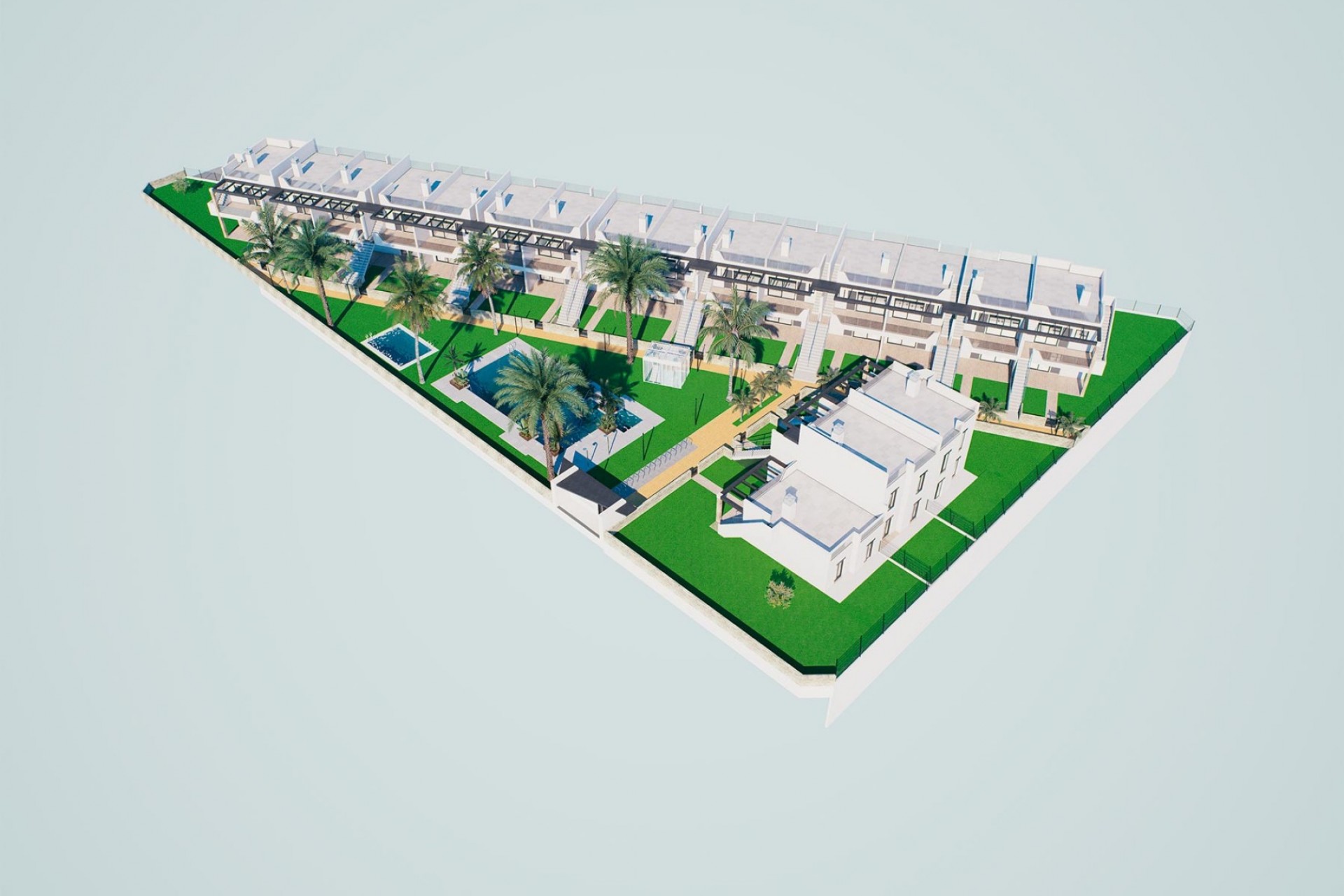 Thiar Village V est un complexe résidentiel exclusif situé à Pilar de la Horadada , conçu pour ceux qui recherchent l'équilibre parfait entre confort , design moderne et authentique art de vivre méditerranéen . Cet élégant complexe comprend 62 appartements de style bungalow , offrant la possibilité de profiter d'un logement raffiné dans un cadre privilégié sur la Costa Blanca . Chaque logement comprend 2 chambres et 2 salles de bains , avec la possibilité de choisir entre des bungalows de plain-pied avec jardin privé ou des bungalows à l'étage avec un grand solarium privé sur le toit , d'où vous pourrez profiter d'une vue dégagée et panoramique sur les environs paisibles du complexe résidentiel. Tous les logements sont livrés avec des finitions haut de gamme , comprenant des stores électriques , une cuisine entièrement équipée , une pré-installation pour la climatisation , des salles de bains entièrement équipées , des placards intégrés dans toutes les chambres et une place de parking privée dans un garage souterrain , garantissant confort, fonctionnalité et efficacité . Le complexe comprend un jardin commun bien entretenu, conçu pour la détente et les échanges, avec une grande piscine commune , un jacuzzi et une pataugeoire , créant un cadre idéal pour se relaxer et profiter de l'excellent climat tout au long de l'année. L'emplacement de Thiar Village V à Pilar de la Horadada est l'un de ses atouts majeurs. À deux pas du centre-ville, il offre un accès immédiat aux supermarchés , restaurants , commerces et à tous les services essentiels . Les plages de Torre de la Horadada et de Mil Palmeras , avec leur sable fin et leurs agréables promenades, sont à moins de 2 km . Pour les amateurs de golf, le prestigieux golf Lo Romero , avec son parcours 18 trous , est à moins de 10 minutes . De plus, le complexe résidentiel bénéficie d'excellentes liaisons de transport, avec un accès facile à l'autoroute AP-7 , à environ 40 minutes de l'aéroport international de Murcie-Corvera et à moins d'une heure de l'aéroport d'Alicante-Elche . Si vous recherchez une maison moderne à proximité de la mer , dans un complexe résidentiel exclusif offrant toutes les commodités et située dans l'un des quartiers les plus prisés de la Costa Blanca , Thiar Village V est fait pour vous. Contactez-nous dès aujourd'hui et planifiez votre visite pour découvrir votre nouvelle maison méditerranéenne .