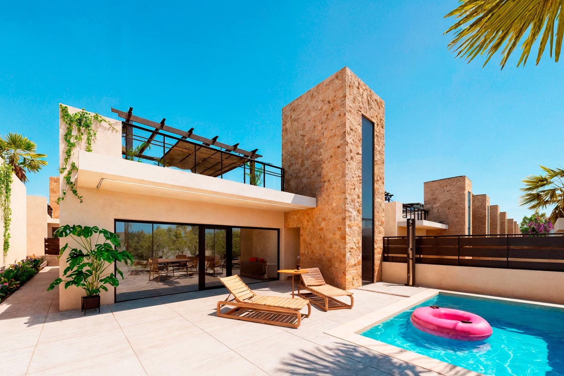 Le projet résidentiel Wind Mill Spain est un projet novateur conçu pour ceux qui recherchent un lieu de vie où tranquillité , beauté naturelle et mode de vie moderne et durable s'harmonisent parfaitement. Situé à La Pinilla , un charmant village rural de Fuente Álamo (Murcie) , ce complexe résidentiel offre un équilibre idéal entre tradition méditerranéenne et innovation contemporaine , dans un cadre authentique et paisible. Le projet propose une sélection soigneusement choisie de types de logements adaptés à différents modes de vie, notamment des villas individuelles , des villas jumelées , des bungalows et des maisons de ville , tous intégrés dans un environnement naturel qui invite à profiter du plein air et du rythme de vie décontracté de l'intérieur de la Méditerranée. Au sein de ce complexe résidentiel exclusif, la VILLA GRANADA se distingue comme une élégante villa individuelle de plain-pied, située sur des parcelles à partir de 200 m² , conçue pour offrir confort, fonctionnalité et intimité. La propriété comprend 3 chambres et 2 salles de bains , une piscine privée , un parking et un magnifique solarium privé de 83 m² sur le toit, agrémenté d'une pergola . Cet espace est idéal pour se détendre en plein air et profiter du soleil toute l'année dans un cadre naturel paisible. Les villas sont livrées avec des finitions haut de gamme , comprenant une cuisine entièrement équipée avec îlot central et appareils électroménagers , des salles de bains complètes , la climatisation , des stores motorisés , un éclairage intérieur et extérieur , et un interphone vidéo , offrant une maison prête à emménager avec un haut niveau d'efficacité et de confort. Le Wind Mill Spain est un havre de paix intemporel, idéal pour les amoureux de la campagne espagnole . Vous pourrez vous y détendre, vous ressourcer au contact de la nature et profiter d'un mode de vie sain sans renoncer au confort moderne. Son emplacement est stratégique, à quelques minutes en voiture des plages de Bolnuevo et Mazarrón , réputées pour leurs eaux cristallines et leur sable doré , ainsi que des sentiers de randonnée pédestre et cycliste , des terrains de golf et des excursions culturelles attrayantes vers Carthagène et Murcie . De plus, il bénéficie d'excellentes liaisons avec les aéroports internationaux de Murcie et d'Alicante . Une opportunité unique de vivre ou d'investir dans une villa neuve sur la Costa Cálida , au cœur d'une nature préservée, baignée de soleil et imprégnée d'authenticité. Contactez-nous dès aujourd'hui et découvrez le charme de la vie à The Wind Mill Spain.