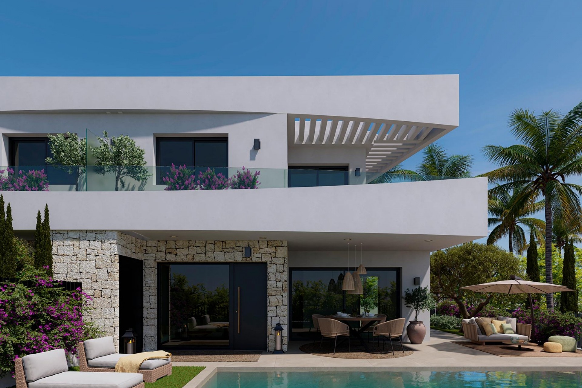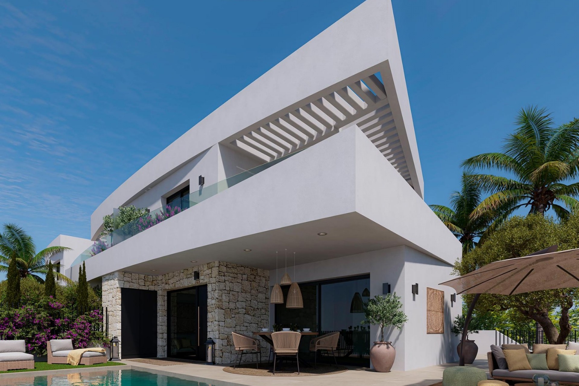 Découvrez ce nouveau programme de villas exclusives à Dolores (Alicante) , un havre de paix à l'intérieur des terres de la Costa Blanca , alliant nature, confort et style contemporain. Ce projet de charme se compose de trois maisons uniques : une villa individuelle et deux villas jumelées, toutes dotées d'un design élégant et moderne et de finitions haut de gamme, conçues pour offrir un bien-être et un confort optimaux dans les moindres détails. Chaque villa dispose de trois chambres spacieuses et de trois salles de bains privatives , ainsi que de toilettes invités supplémentaires pour plus de fonctionnalité. Son agencement moderne optimise la lumière naturelle et relie les espaces intérieurs et extérieurs, créant une atmosphère chaleureuse et accueillante. À l'extérieur, vous profiterez de terrasses ensoleillées, d'une piscine et de jardins privés, ainsi que d'un parking sur place , idéal pour profiter du climat méditerranéen toute l'année. Ces maisons sont livrées équipées de salles de bains complètes avec chauffage au sol , d'une cuisine équipée d'appareils électroménagers , de la climatisation installée , de panneaux solaires pour une meilleure efficacité énergétique, de stores électriques , d'un interphone vidéo et d'une porte d'accès motorisée pour véhicules , garantissant un haut niveau de confort et de sécurité. La ville de Dolores , située au cœur de la Vega Baja del Segura, offre un cadre authentique et paisible sans pour autant renoncer à la proximité de tous les services. Dans les environs, vous trouverez supermarchés, restaurants, écoles et espaces de loisirs , ainsi qu'un excellent réseau routier vous permettant de rejoindre l'aéroport international d'Alicante-Elche en seulement 30 minutes . Dolores est entourée de magnifiques paysages naturels, comme le parc naturel des lagunes de La Mata et de Torrevieja , et se trouve à quelques minutes des plus belles plages de sable fin de la Costa Blanca , comme Guardamar del Segura ou La Marina . Les amateurs de golf pourront également profiter de prestigieux parcours à proximité, comme La Marquesa Golf ou La Finca Golf , parfaits pour savourer pleinement l'art de vivre méditerranéen. Ce développement est l'opportunité parfaite pour ceux qui recherchent une villa moderne et efficace entourée de nature, tout en étant proche de la mer et de toutes les commodités. Contactez-nous dès aujourd'hui et découvrez votre nouvelle maison à Dolores, un coin charmant au cœur de la Costa Blanca.