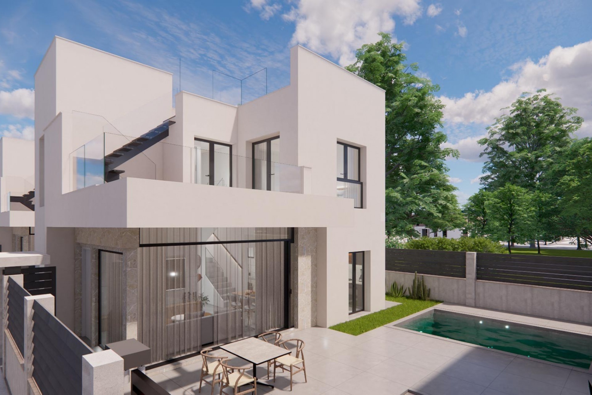 Découvrez ce programme immobilier exclusif de 14 villas individuelles situé dans le prestigieux quartier résidentiel de La Herrada à Los Montesinos , un havre de paix et de standing offrant intimité , confort et un cadre de vie méditerranéen d' exception tout au long de l'année. Un environnement bien entretenu, sécurisé et parfaitement desservi, idéal pour y vivre à l'année ou pour investir sur la Costa Blanca Sud . Chaque villa, répartie sur deux étages, propose 3 ou 4 chambres et 3 salles de bains . Située sur des parcelles à partir de 185 m² , elle offre de vastes espaces extérieurs conçus pour profiter du soleil, de la vie en plein air et de la piscine privée . Les villas bénéficient de finitions haut de gamme , incluant des salles de bains entièrement équipées avec chauffage au sol , une cuisine aménagée , des placards intégrés , une porte d'entrée blindée , des stores électriques et une pré-installation pour la climatisation gainable . Chaque villa dispose d'une piscine privée , d'un parking avec portail motorisé , d'une pré-installation pour une borne de recharge pour véhicule électrique et se trouve au sein d'une résidence sécurisée avec voie d'accès privée , garantissant calme et tranquillité. Son emplacement est un autre atout majeur. Los Montesinos offre tous les services essentiels : supermarchés, restaurants, centres médicaux, écoles et commerces, à quelques minutes seulement. Les plages de Guardamar del Segura et de Torrevieja sont à seulement 10-15 minutes , tout comme des parcours de golf renommés tels que La Finca Golf , Vistabella Golf et La Marquesa Golf . Pour les loisirs et le shopping, les centres commerciaux Habaneras et La Zenia Boulevard sont à proximité. L’aéroport d’Alicante-Elche est à environ 40 minutes en voiture et propose d’excellentes liaisons internationales. Ces villas représentent une combinaison parfaite de design moderne , d'emplacement stratégique et de style de vie méditerranéen . Contactez-nous dès aujourd'hui et découvrez votre nouvelle villa à La Herrada, Los Montesinos.