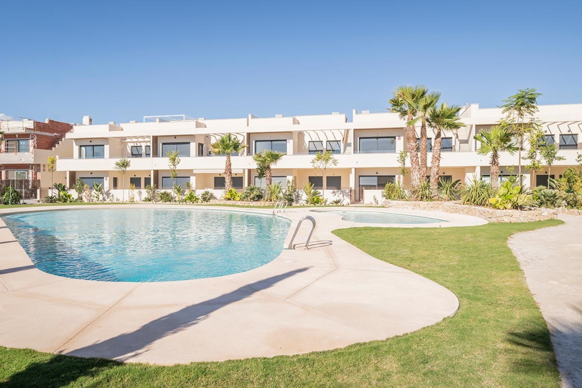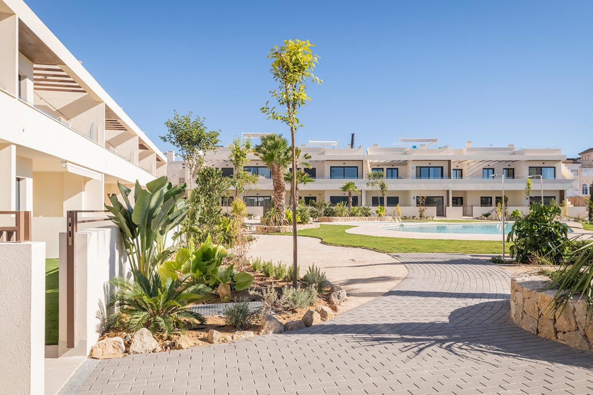 Découvrez Villa Amalia Gardens, une impressionnante résidence située à Torrevieja, une belle ville côtière de la Costa Blanca. À seulement 100 mètres de la mer, notre résidence propose des bungalows de 2 et 3 chambres, offrant des options de rez-de-chaussée avec jardin ou d'étage avec solarium. Chaque logement a été conçu avec le souci du détail et doté d'équipements de qualité tels qu'une cuisine équipée, l'aérothermie, un sol en porcelaine, des fenêtres en PVC avec stores motorisés, une alarme, la climatisation chaud-froid, des salles de bains équipées d'un moustiquaire, des meubles et chauffage par le sol. , et une place de garage au sous-sol. Mais ce qui rend vraiment la Villa Amalia Gardens spéciale, ce sont ses espaces communs confortables avec des espaces pour se détendre et se promener, des espaces verts et une belle piscine. Profitez du style de vie méditerranéen dans un environnement calme et paisible. De plus, Torrevieja est une ville dynamique et passionnante qui offre une grande variété de services, de divertissements et d'activités pour toute la famille. Avec ses plages impressionnantes, sa belle promenade, ses terrains de golf à proximité, ses boutiques et ses restaurants, Torrevieja est l'endroit idéal pour vivre ou passer des vacances incroyables. Ne manquez pas l'occasion de profiter de tout ce que Villa Amalia Gardens et Torrevieja ont à offrir !