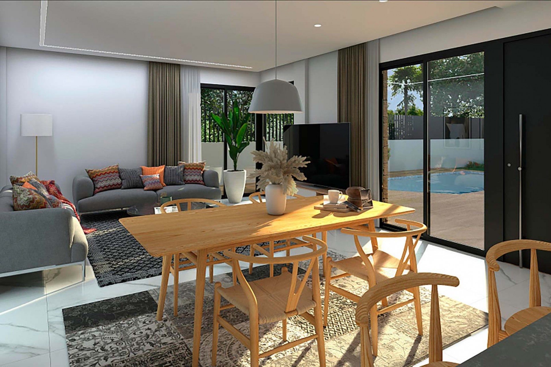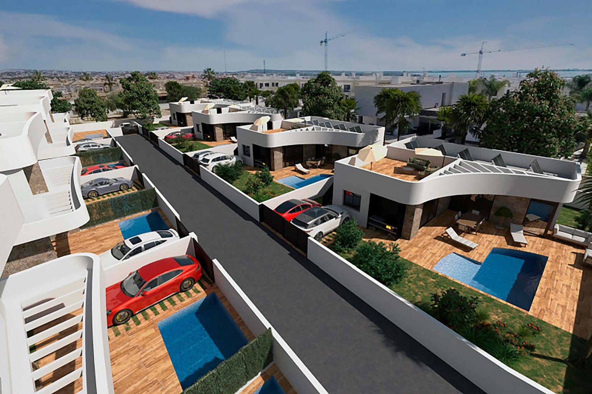 Essence La Herrada est un complexe résidentiel sophistiqué composé de villas indépendantes et de maisons de style quadruple, toutes dotées de 3 grandes chambres, situées dans le quartier résidentiel calme de La Herrada, à Los Montesinos (Alicante). Ce complexe est idéal pour ceux qui recherchent la qualité, le confort et un environnement incomparable sur la Costa Blanca. Les villas sont conçues sur deux étages, avec des espaces bien répartis qui comprennent un impressionnant solarium sur le toit, parfait pour profiter du soleil méditerranéen, ainsi qu'une piscine privée et un jardin avec parking hors plan. Chaque maison se distingue par ses finitions de luxe et son design moderne, conçu pour offrir une maison familiale confortable, fonctionnelle et accueillante. Ces maisons sont livrées entièrement équipées avec une cuisine équipée et des appareils électroménagers, une pré-installation de climatisation gainable, un éclairage installé, des écrans dans les salles de bains et un aménagement intérieur qui maximise la lumière naturelle et la connexion avec l'extérieur. Los Montesinos, situé au sud d'Alicante, offre un cadre pittoresque qui allie tranquillité et commodité. À seulement 10 minutes en voiture, vous trouverez Torrevieja et le célèbre centre commercial La Zenia Boulevard, l'un des plus grands d'Europe, avec une grande variété de boutiques, restaurants et loisirs. Les plages spectaculaires de Guardamar del Segura se trouvent à seulement 15 minutes, idéales pour profiter de la mer et de la nature. De plus, les amateurs de golf ont accès à des parcours internationaux prestigieux tels que La Finca Golf et Vistabella Golf, réputés pour leur design et leur qualité. Découvrez une vie de luxe, de confort et de beauté à Essence La Herrada. Contactez-nous dès aujourd'hui pour plus d'informations et pour faire le premier pas vers votre nouvelle vie sur la Costa Blanca. Nous avons hâte de vous voir !
