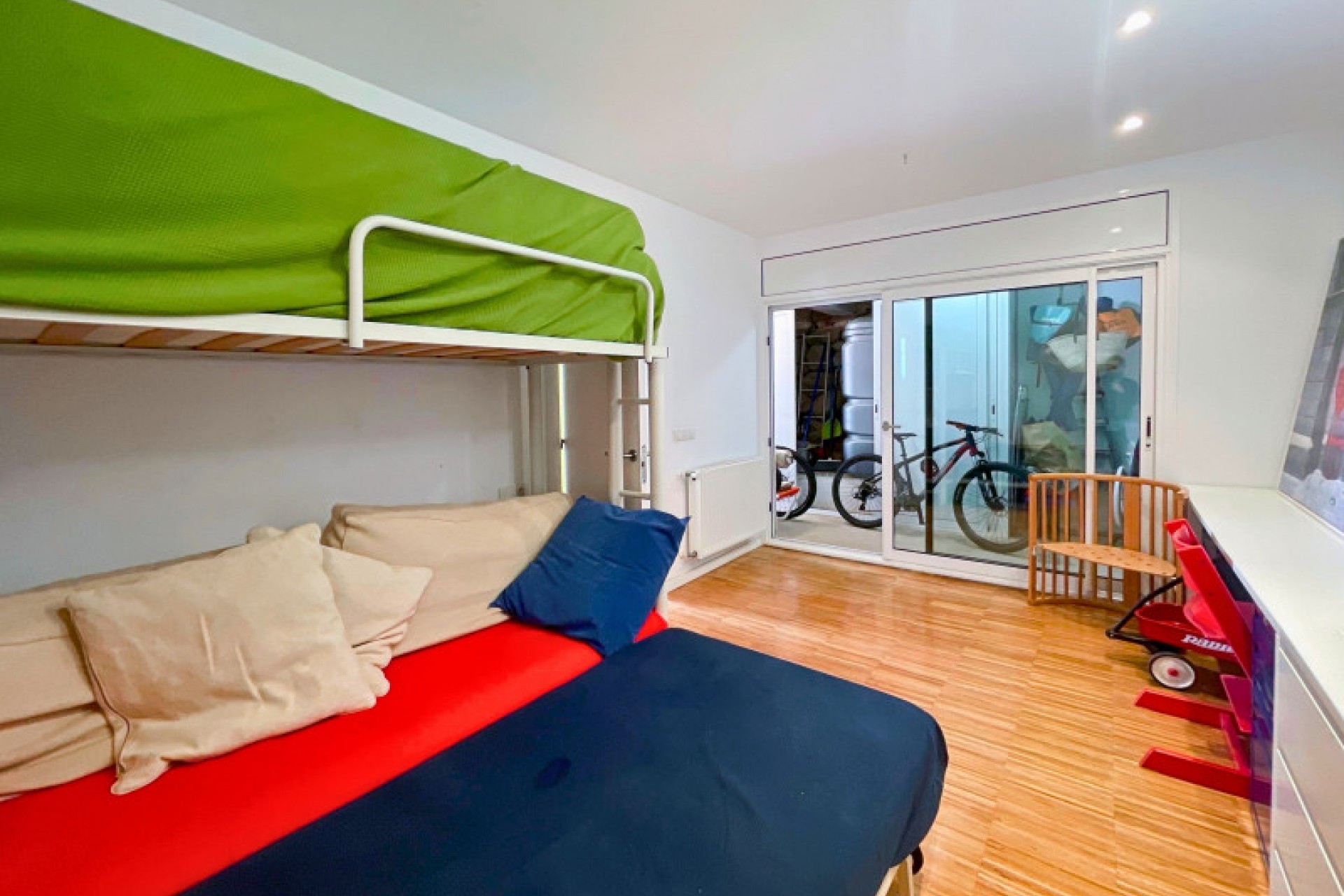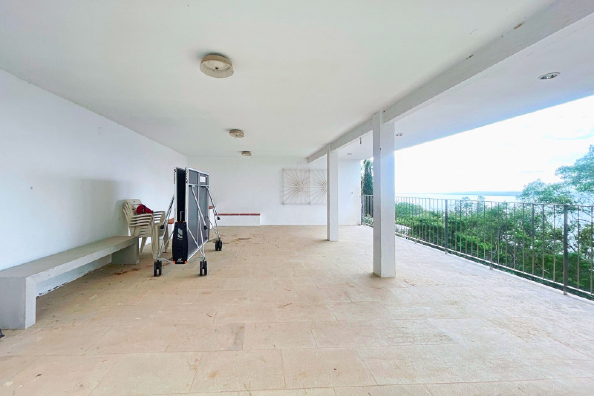 Le premier étage, avec une salle polyvalente, une buanderie avec la salle des machines et une première salle de douches. De là, on accède à de vastes terrasses permettant de créer différentes ambiances, une salle de jeux et la possibilité de construire sur l'un des espaces extérieurs. Il y a également la possibilité de construire une piscine dans la partie inférieure du terrain.