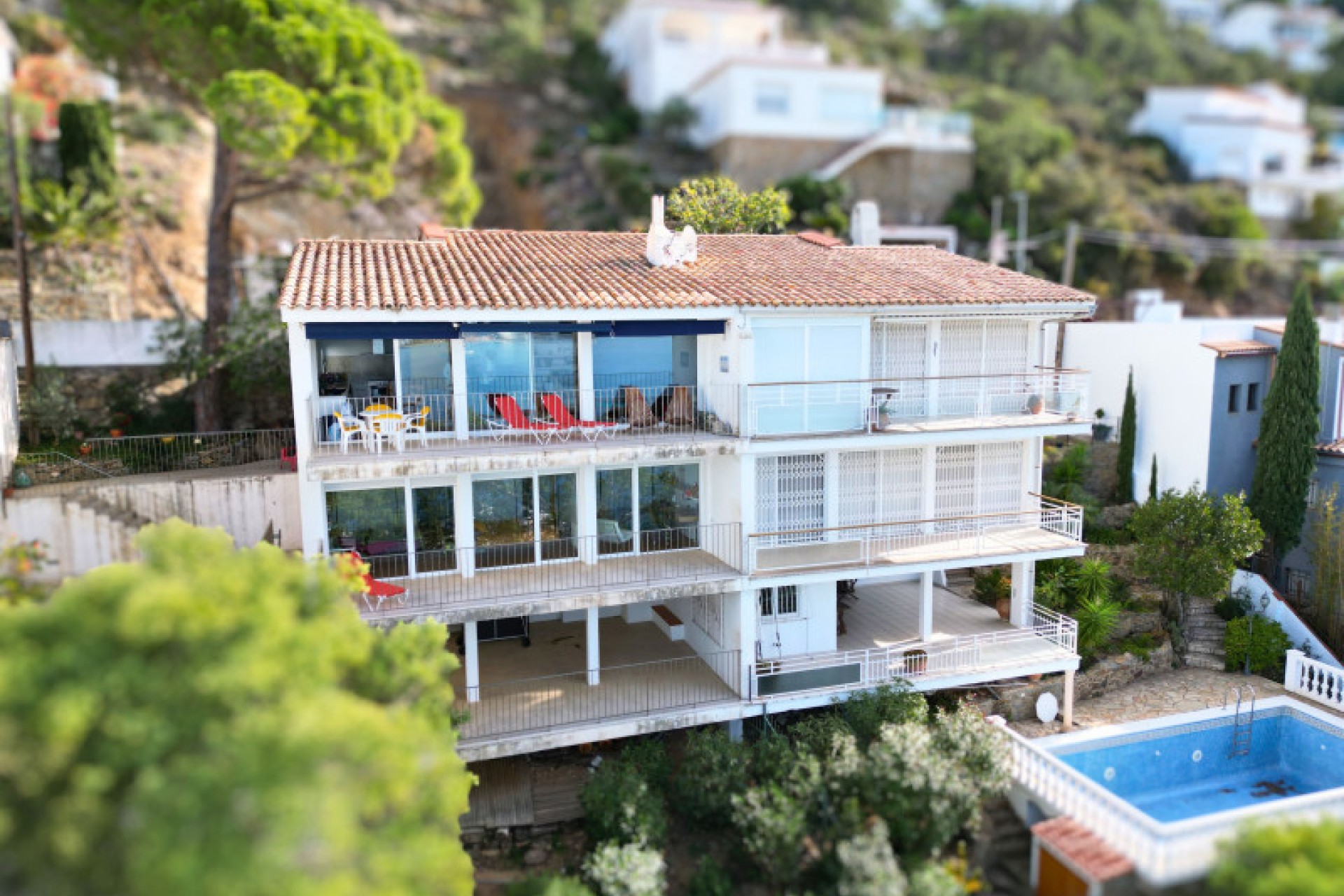 Maison de trois étages avec vue mer, d'une superficie de 178 m2 sur un terrain de 819 m2.